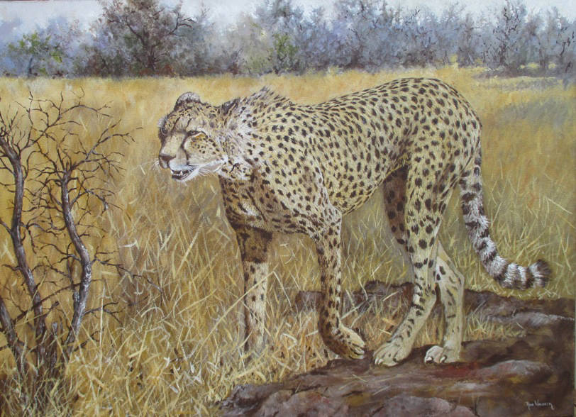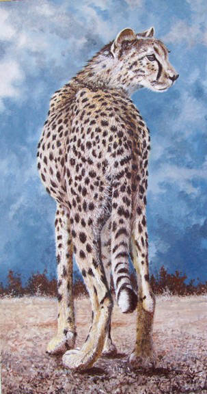 This painting was done from a very good photograph. Much more of the leopard was visible and she was sitting. I was very pleased with the progress of the painting and as I normally do I put it down to view at a distance.